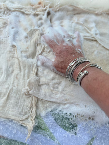 At Rug and Spindle, I can't wait to welcome your shorn fleeces, ready to take it through an exciting transformation. Three washes with organic soap and a splash of vinegar to preserve its lustre and the first step is done.